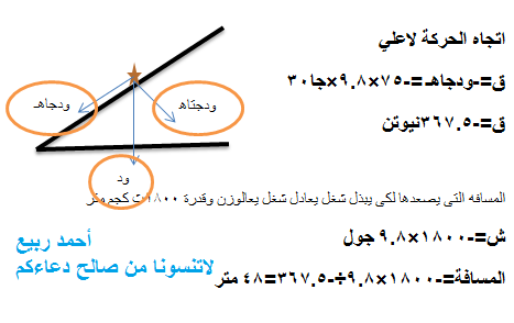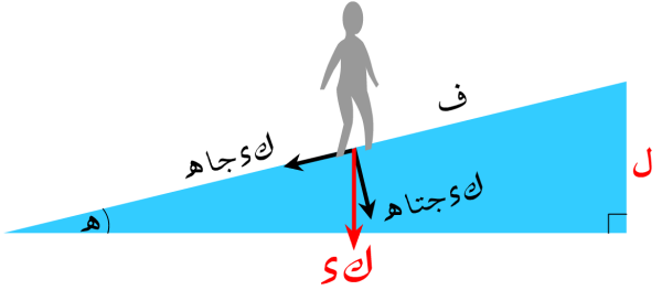 ارجو توضيح اتجاة القوة عند صعود شخص على مستوى مائل |
