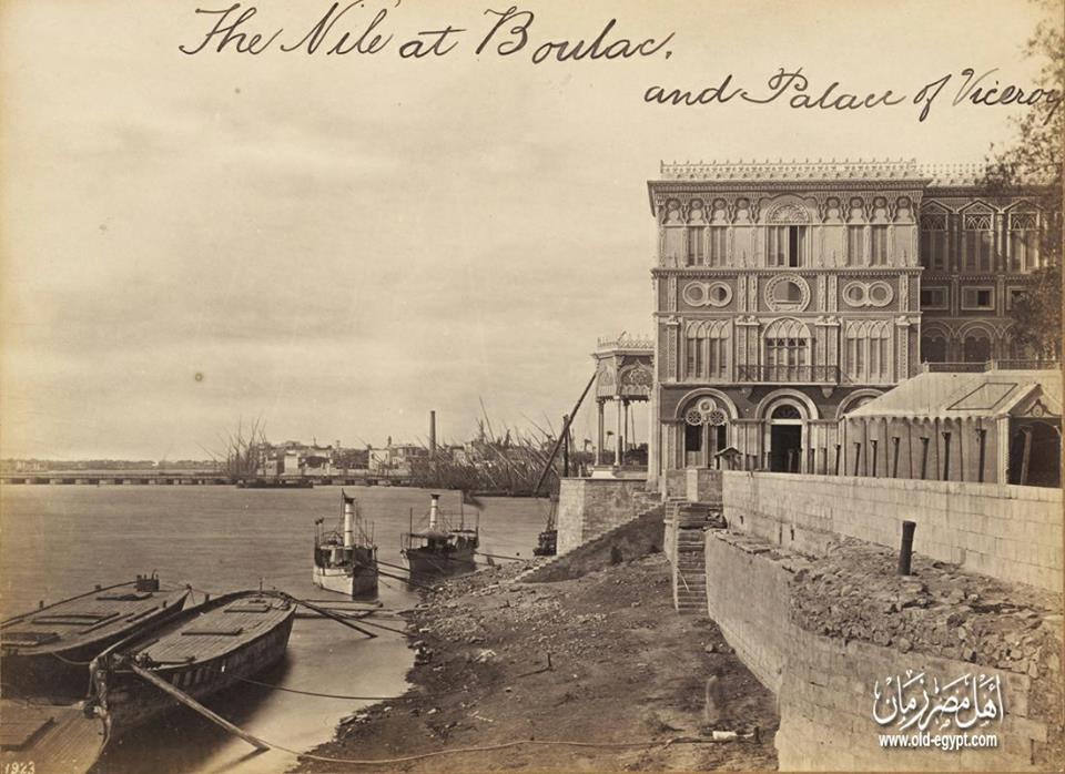 الصورة التقطت سنة 1868 و يظهر بها قصر سعيد باشا والي مصر ، و كان يسمي بقصر النيل ، تحول لاحقا الي مقر لقيادة الجيش المصري و عرف باسم " ثكنات قصر النيل " ... لكن تم هدمه سنة 1954 و انشئ في نفس موقعه مبني جامعة الدول العربية و فندق النيل هليتون .. كما يظهر بالصورة ايضا ما يشبة الكوبري علي النيل و هو ليس الا مجرد حواجز عملاقة تم زرعها بغرض حجب المياة لتجفيف النيل في منطقة انشاء كوبري قصر النيل حتي تسهل حركة العمال اثناء العمل اذ لم يتم تحويل مجري النهر اثناء انشاء الكوبري .. و تم زرع هذة الحواجز بداية من نفس موقع فندق رمسيس هيلتون حاليا ... بمعني اخر نفس موقع كوبري اكتوبر حاليا ... اخيرا تم الانتهاء من بناء الكوبري حوالي عام 1871 و سمي بكوبري الخديوي اسماعيل الا ان العامة من المصريين اطلقوا عليه اسم كوبري قصر النيل نظر لقربة من قصر النيل .... و في عام 1874 وضعت تماثيل الاسود الاربعة الفخمة علي مدخلي الكوبري من الجهتين و صار واحدا من أروع الكباري في العالم تهافت المصورين الفوتوغرافيين من كل ارجاء العالم لالتقاط الصور التذكارية له ... ![]()
