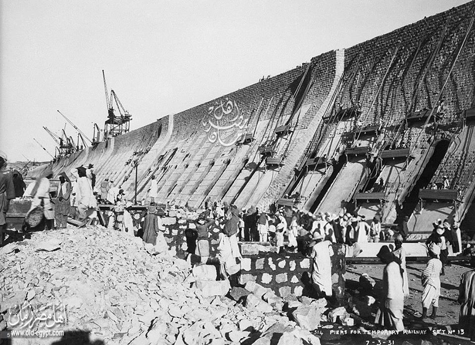 الاســـم:	لقطة نادرة اثناء العمل في تعلية خزان اسوان سنة 1931 في عهد الملك فؤاد الاول ..jpg‏