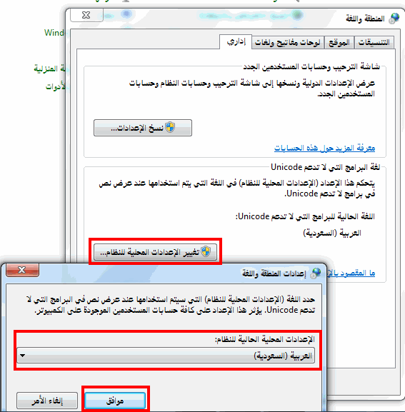يجب بداية إعداد اللغة العربية بصورة صحيحة شاهد الصور |