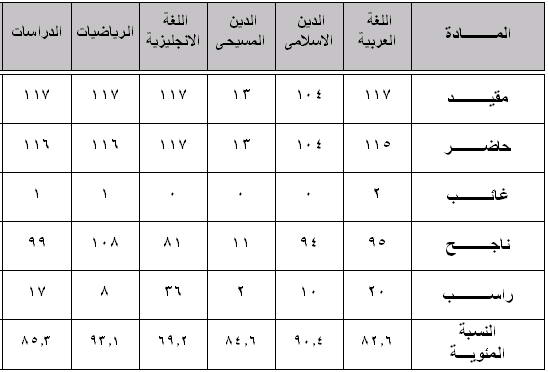 1- النسبة العامة للنجاح لا تخرج سليمة فى الصف الاول والثانى