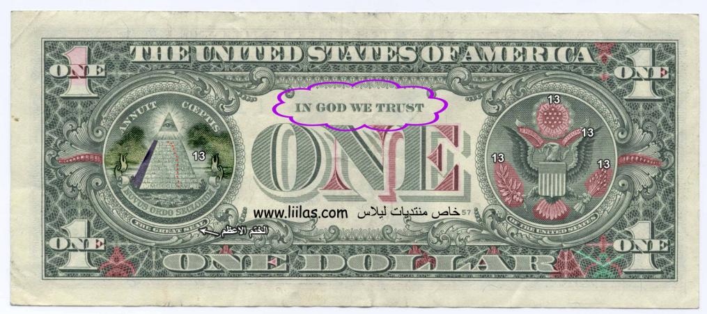 In God We Trust. هذة الكلمة موجودة على الدولار كورقة نقدية وموجودة ايضا على الدولار المعدنى.