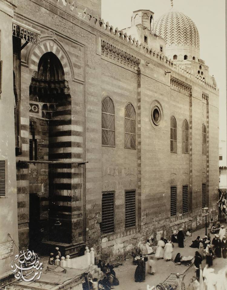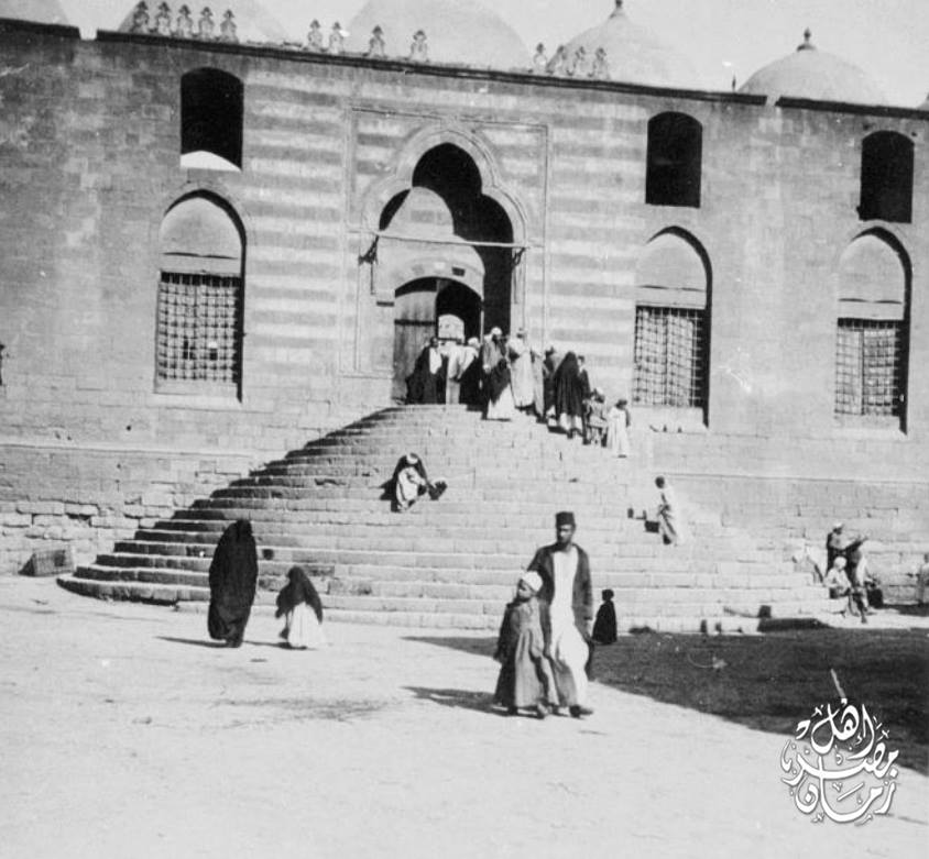 لقطة نادرة من أمام جامع الملكة صفية بشارع محمد علي - حي الدرب الاحمر بالقاهرة سنة 1908 .