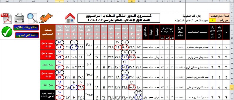 Exll كنترول أباالحسن للصف الأول والثانى الإعدادى العام والرياضي إصدار 6.1 لسنة 2018م