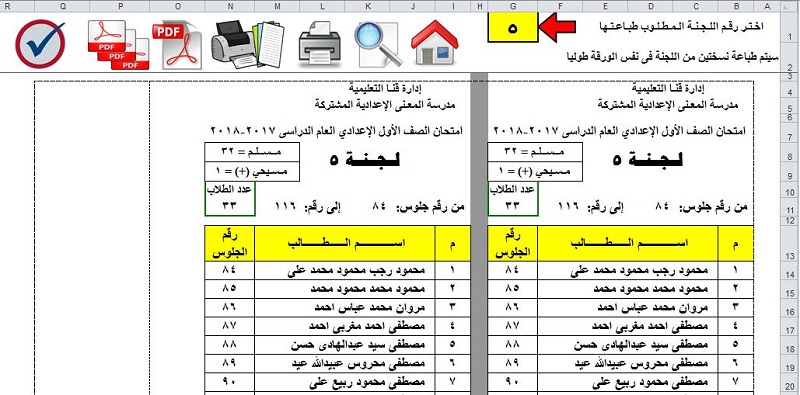 4- عمل جدول الامتحانات ، ويمكن طبعه على ظهر رقم الجلوس.