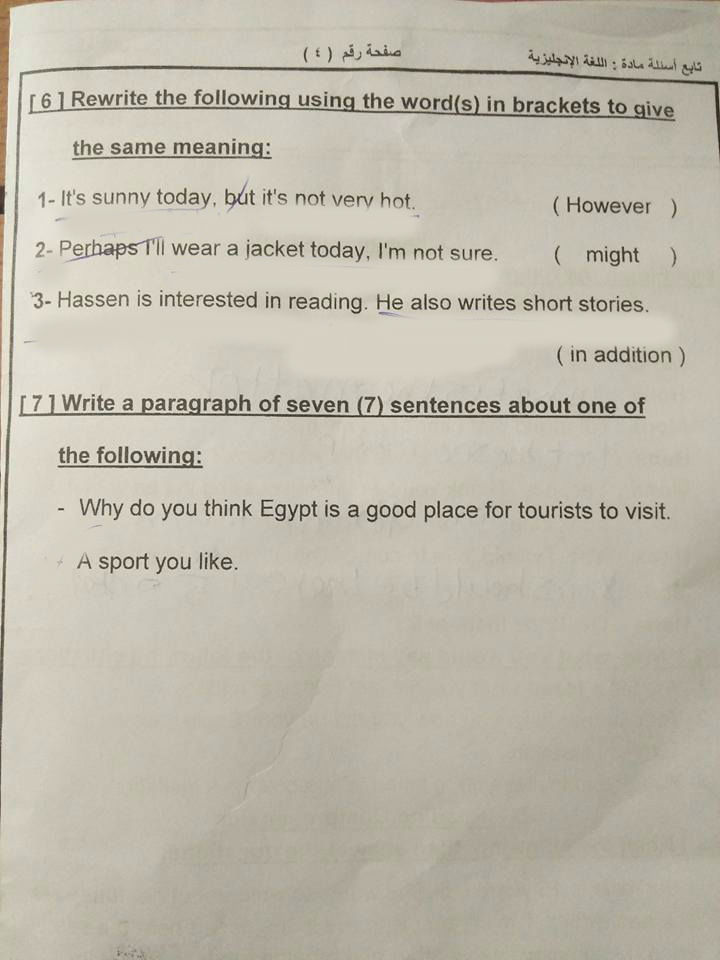 امتحان محافظة السويس يناير 2018 لغة انجليزية