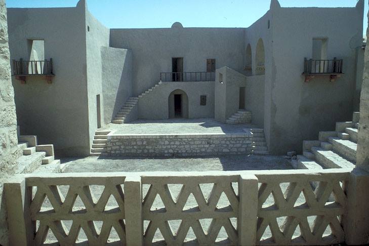وارتفعت أعمدة المباني العامة : المسجد، والمسرح، والسوق، ومعرض لمنتجات القرية، ومدرسة للبنين، وحظيرة المواشي الجماعية، وعدد من المرافق الأخرى، وحول منطقة المرافق تمت إقامة جزء من المباني السكنية...