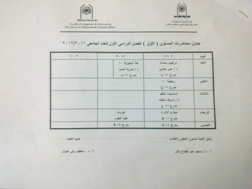 ده جدول المحاضرات بتاعكوا بس ده مؤقت و هيتغير 600 مره ف السنه