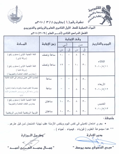 يا جماعه حد فيكم عرف ميعاد الامتحانات (عملى و نظرى) انا عندى زى ما قلت(15\5\2010):النظرى (8\5\2010):العملى