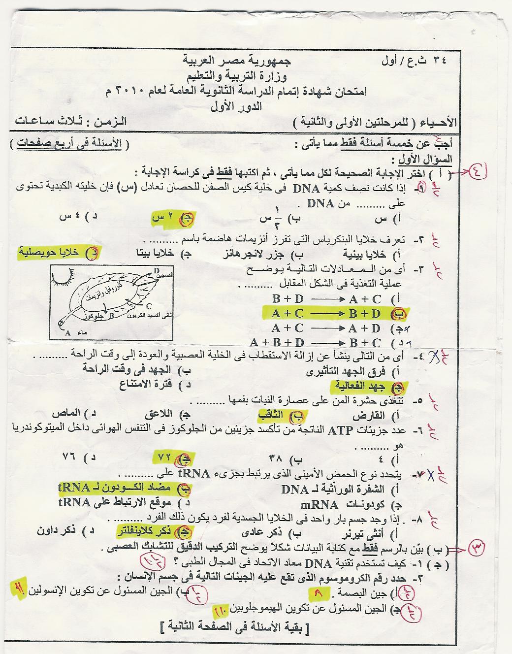 حمل الان نموذج اجابة الاحياء 2010