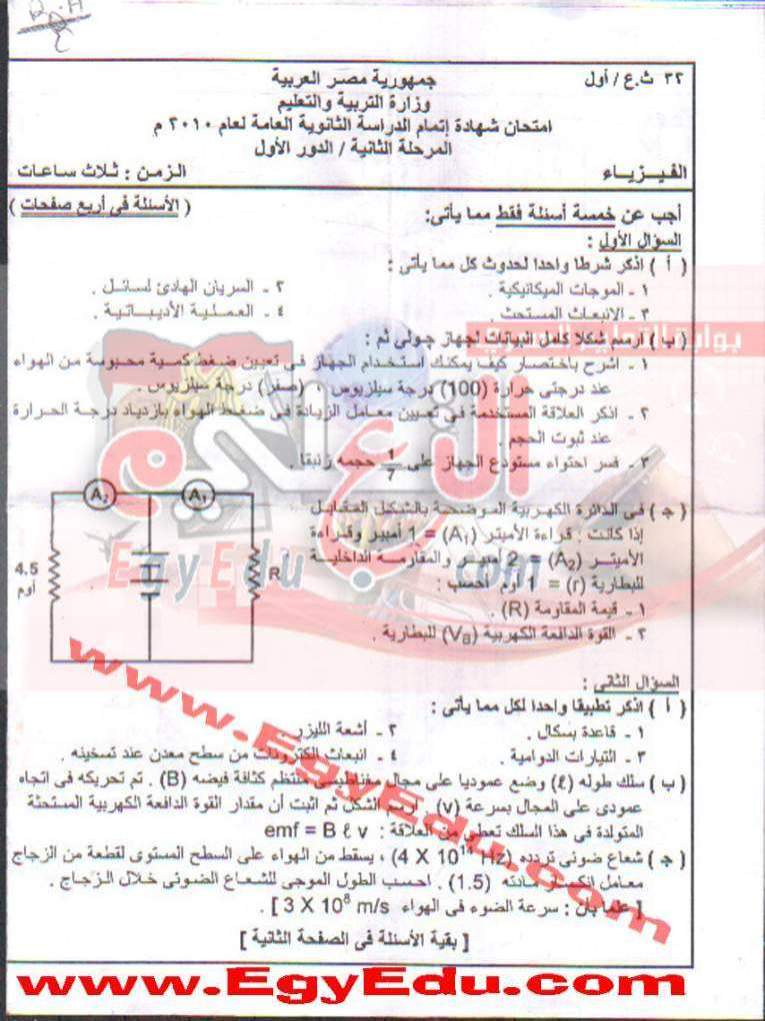 حمل بسرعة امتحان الفيزياء من المرفقات