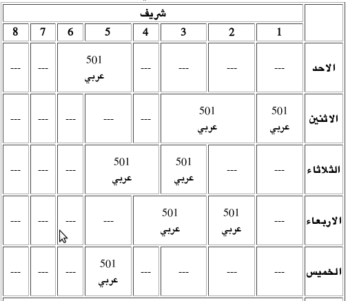 ملاحظة : اخي احمد لا تنس اضافة مادة الموسيقى لكي يكتمل الجدول.