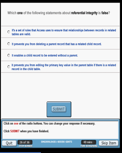 اجابة السؤال الأول you can move controls between sections in a report اجابة السؤال الثاني it enables a child record to be entered without a parent |