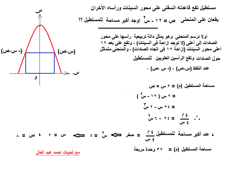 ص = 12 - س تربيع إوجد أكبر مساحة للمستطيل ؟؟