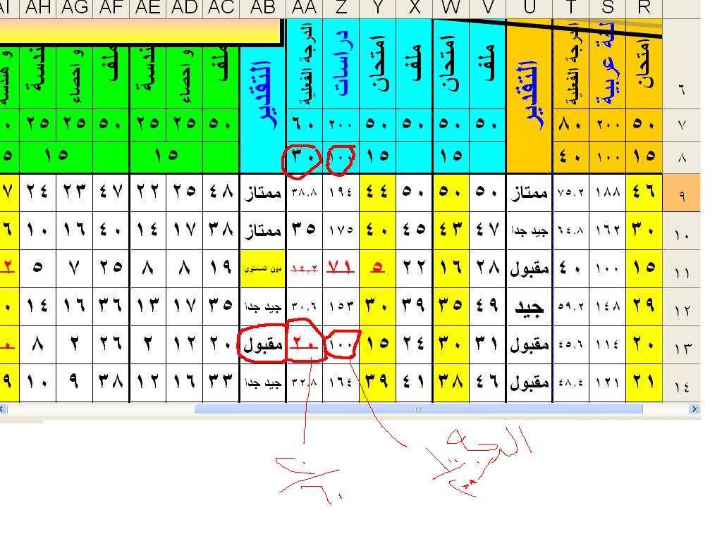هناك خطأ في شيت الصف الاول لمادة الدراسات في معادلة الدرجة الفعلية مما يؤدي ان يكون الطالب ناجح وهومكتوب دون المستوى والدرجه الفعلية غير صحيحة