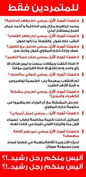 انما اثور لاجل فرد لاجل مرسي لاجل كرسي لاجل منصب لاجل اجلس بقصر الرئاسة لاجل ابيع نهر النيل لاجل جماعتي فهذا الزل بعينة فهذا الهوان باصلة