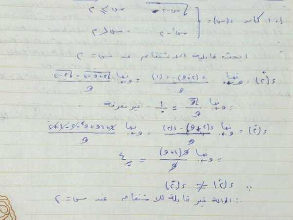 الدالة المكتوبة غير متصلة بعد دراسة الاتصال