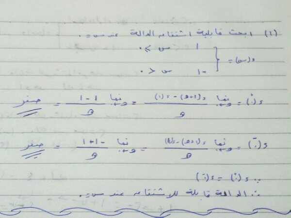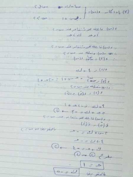 اذا كان د(س) ={الجدذر التربيعي (3س-2 )-2 (علي ) س-2 س لاتساوي 2 ك س تساوي 2 اوجد قيمة ك لكي تجعل الدالة متصلة ــــــــــــــــــــــــــــــــــــــــــــــــــ ــــــــــــــــــــــــــــــــــــــــــــــــــ ــــــــــــــــــــــــــــــــــــــــــ 2) اذا كانت د(س) = {أ س تربيع + ب س س اكبر من او تساوي 1 3س-1 س اقل من 1 قابلة للاشتقاق عند س =1 اوجد أ ،ب ــــــــــــــــــــــــــــــــــــــــــــــــــ ــــــــــــــــــــــــــــــــــــــــــــــــــ ـــــــــــــــــــــــــــــــــــ 3) اذا كانت د(س) = {2س تربيع +ج س اقل من 2 أس + ب س اكبر من اوتساوي 2 قابلة للاشتقاق عند س=2 ، د(0) = -2 اوجد أ ، ب ، ج |