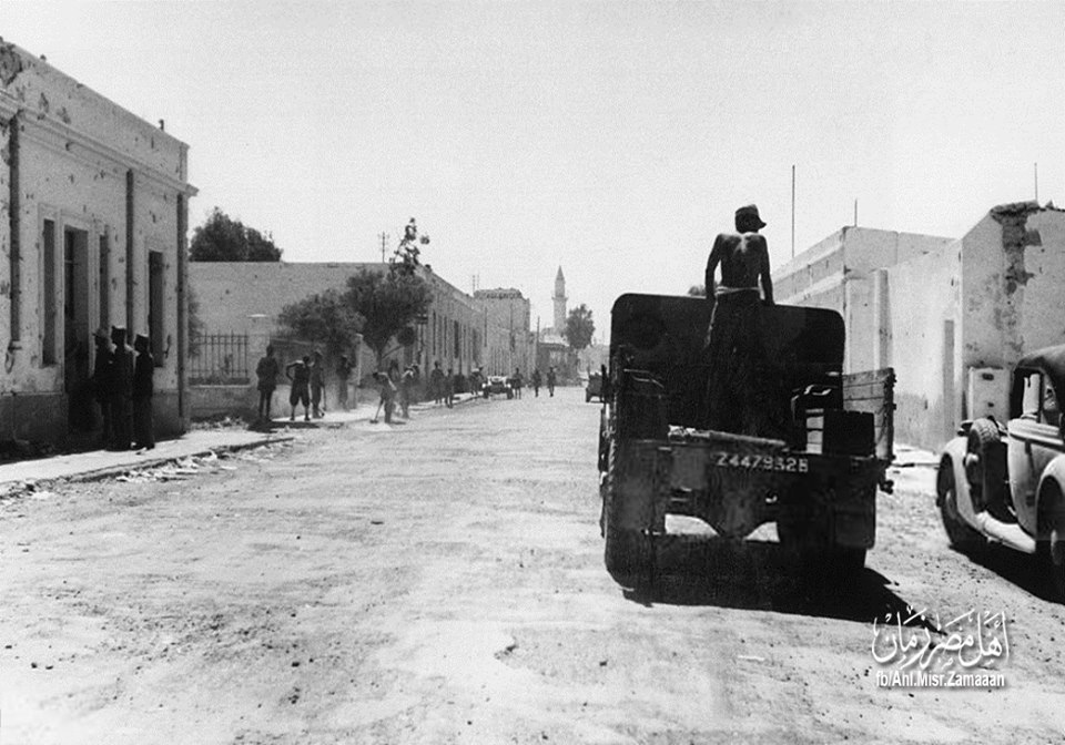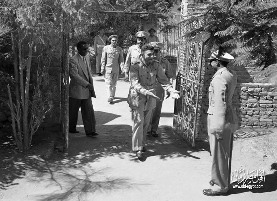 صورة من امام منزل الرئيس محمد نجيب في حلمية الزيتون بالقاهرة سنة 1954 .