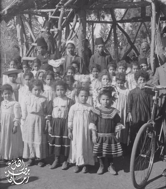 طابور الصباح في احدي المدارس الابتدائية بحي الدقي في الجيزة حوالي عام 1898 .