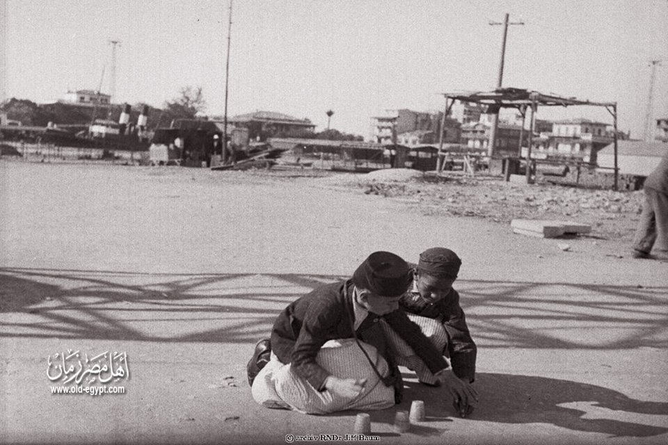 طفلان من مدينة بورسعيد يلعبان لعبة الثلاث اكواب سنة 1931 م