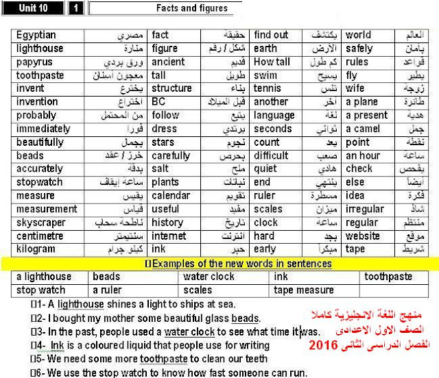 منهج اللغة الانجليزية كاملا الصف الاول الاعدادى الفصل الدراسى الثانى 2016