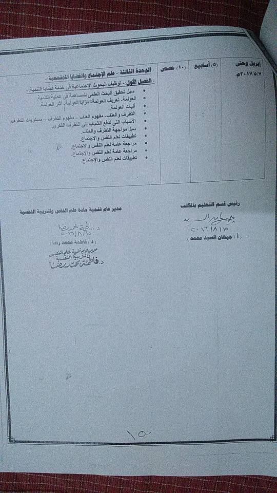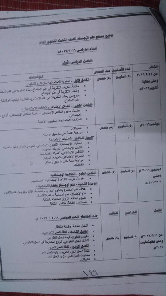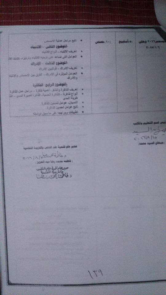 تابع توزيع منهج علم النفس الصف الثانى والثالث للعام الدراسى 2016--2017