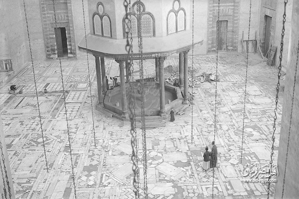 صورة نادره اثناء العمل علي اصلاح وترميم ارضيات مسجد السلطان حسن في القاهرة سنة 1912 م