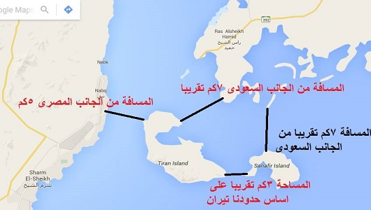 في كتابه "قناة السويس ومشكلاتها المعاصرة" (مكتبة النهضة المصرية، القاهرة 1956)، يشير الدكتور مصطفى الحفناوي أحد أبطال تأميم قناة السويس، إلى جزيرتي تيران وصنافير بقوله (صـ 462) "أما عن الجزيرتين اللتين احتلتهما مصر في خليج العقبة فهما جزيرتان مصريتان سبق أن احتلتهما القوات المصرية عام 1906 أثناء وضع الحدود بين مصر والبلاد العثمانية، فلم يكن في ذلك الاحتلال مفاجأة. ومنذ أن انتهت العلاقة بين مصر والدولة العثمانية ظلت الجزيرتين مصريتين". ولم تكن المملكة العربية السعودية قد تأسست أصلا في ذلك الحين إذ أنها أصبحت دولة عام 1932.