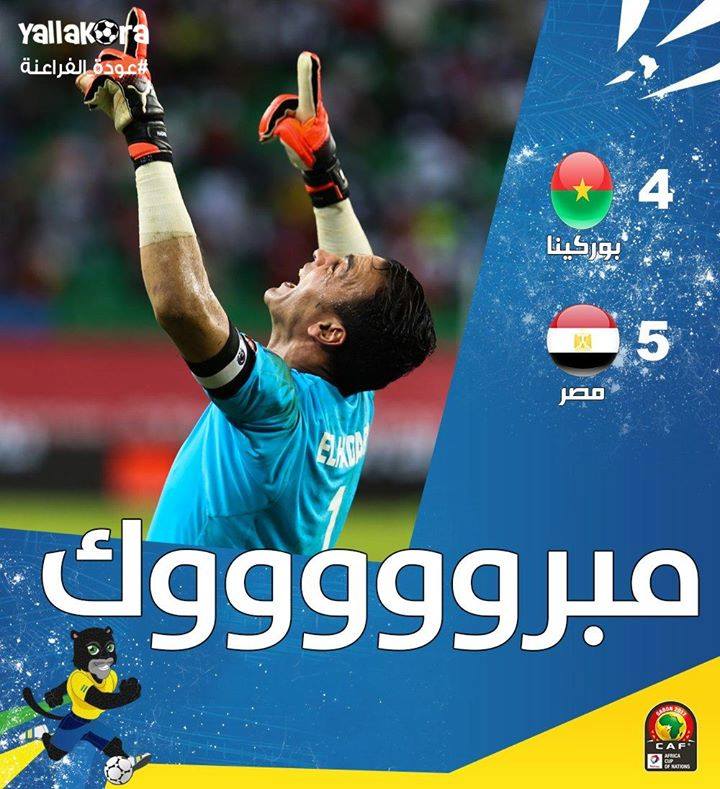 بوركينا فاسو1-39:00 م مصر1-4فوز مصر بضربات الترجيح 4 /3- بعد انتهاء المباراة 1 /1 http://www.yallakora.com/ar/YallakoraTv/TVDetails/Special/12/324/12/1160101/1128062/%D8%B1%D9%83%D9%84%D8%A7%D8%AA-%D8%A7%D9%84%D8%AA%D8%B1%D8%AC%D9%8A%D8%AD-%D9%84%D9%85%D8%A8%D8%A7%D8%B1%D8%A7%D8%A9-%D9%85%D8%B5%D8%B1-%D9%88%D8%A8%D9%88%D8%B1%D9%83%D9%8A%D9%86%D8%A7 الخميس, 2 فبراير الكاميرون29:00 م غانا0http://www.yallakora.com/ar/Video/ca...A7%D9%86%D8%A7