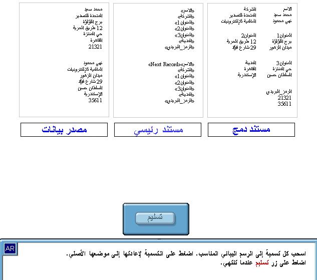 وانا ارفق لك السؤالين الخاصين بدمج المراسلات وهو باللغة العربية وارجو ترجمة الاسئلة الثانية والاجابات الصحيحة باللغة العربية ولك الشكر وتقبل كل احترامي |