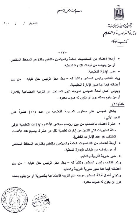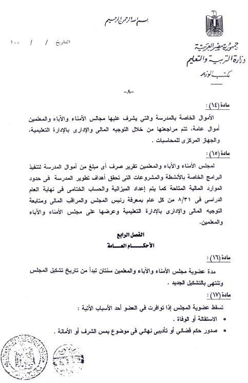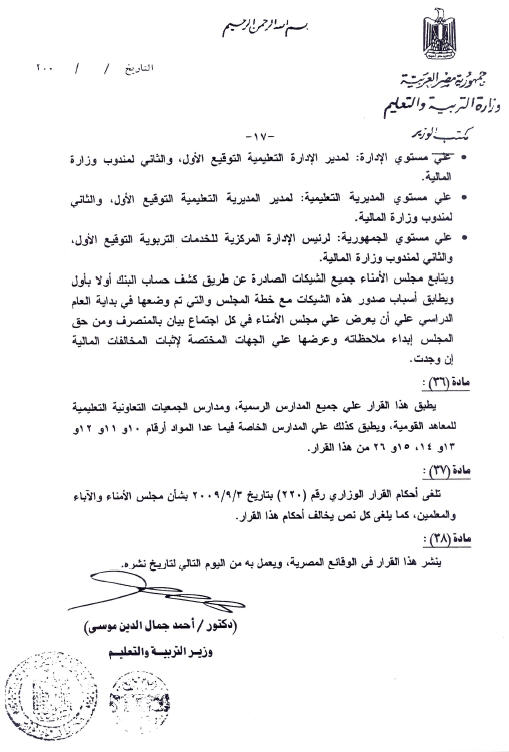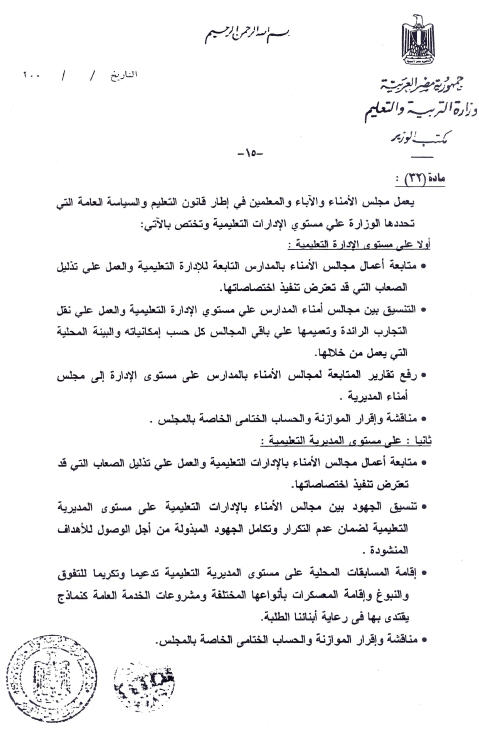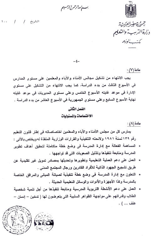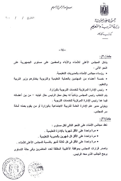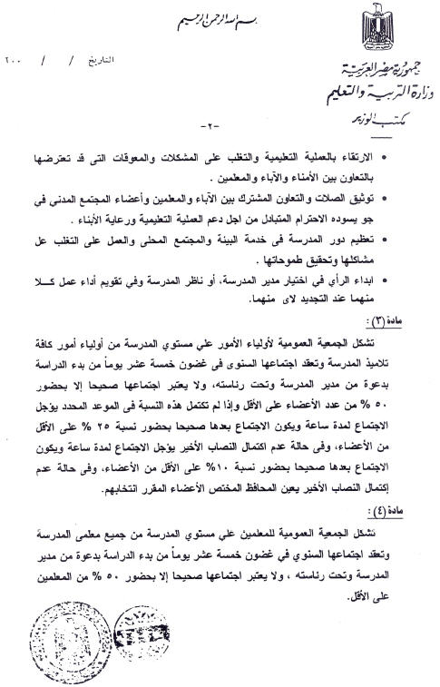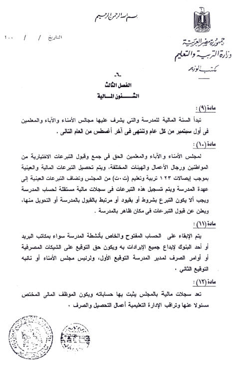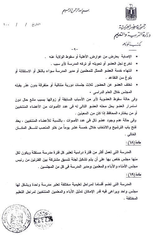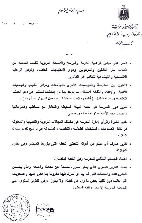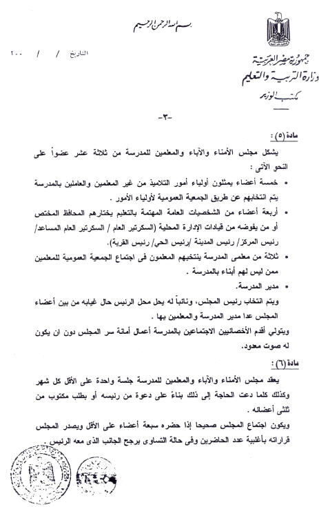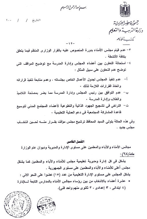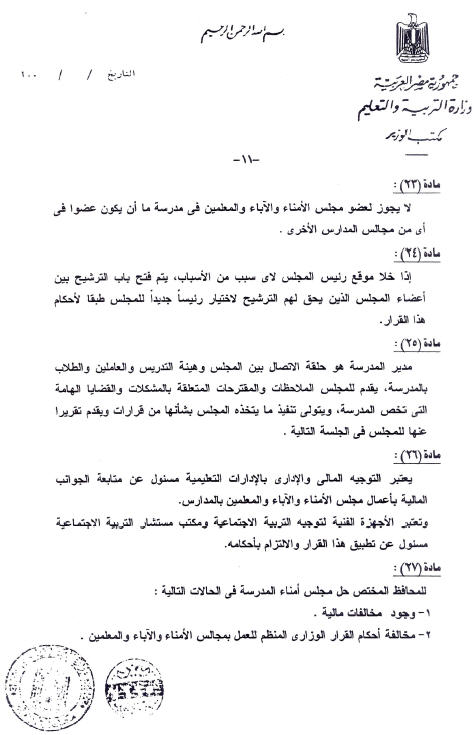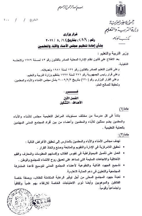 فى قرار وزارة جديد لتشكيل مجلس الامناء والاباء والمعلمين 289 لسنة 2011