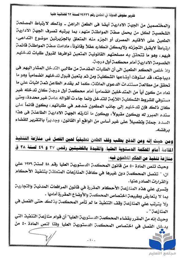 | مفوضى, الدولة, تيران, تقرير, هيئة, وصنافير, قضية |