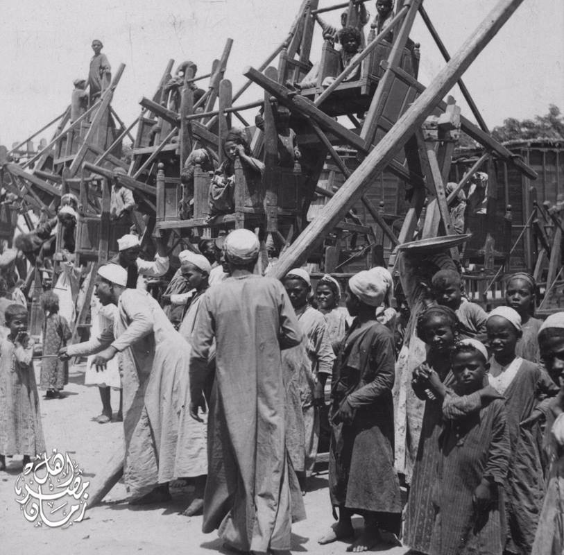 صورة من المراجيح في المولد حوالي عام 1896 .