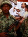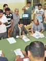![]() تشديدات أمنية وإقبال متوسط فى الساعات الأولى بالإسكندرية الأربعاء، 23 مايو 2012 - 10:14 بدأت فى تمام الساعة الثامنة من صباح اليوم، اللجان الانتخابية بالإسكندرية، فى استقبال الناخبين ممن لهم حق التصويت بالإسكندرية وسط إجراءات أمنية مكثفة من قبل القوات المسلحة والشرطة. ![]() الجيش يمزق لافتات لأبو الفتوح وضعها أحد أنصاره على سيارة أمام لجنة انتخابية بالفيوم الأربعاء، 23 مايو 2012 - 10:06 قام رجال الجيش بتمزيق لافتات للدكتور عبد المنعم أبو الفتوح المرشح لرئاسة الجمهورية، وضعها أحد أنصاره على سيارة أمام لجنة مدرسة التحرير بمدينة الفيوم، وأكدوا أنهم لن يسمحوا بأية تجاوزات اليوم، وأن الدعاية للمرشحين ستمنع بشكل كامل أمام اللجان. ![]() إقبالا متوسطا فى بداية التصويت للإنتخابات الرئاسية بالبحيرة الأربعاء، 23 مايو 2012 - 10:03 شهد اليوم الأول للإنتخابات الرئاسية بالبحيرة إقبالا متوسطا فى معظم اللجان الإنتخابية و تأخر فتح بعض اللجان بسبب تأخر بعض القضاة. ![]() التحفظ على 3 من أنصار أبو الفتوح لدعايتهم له داخل لجان السويس الأربعاء، 23 مايو 2012 - 09:59 قامت قوات الجيش الثالث بضبط 3 من أنصار حزب النور بمدرسة الملك فيصل القديمة، أثناء قيامهم بالدعاية لعبد المنعم أبو الفتوح، والترويج له داخل وخارج اللجنة، حيث تم التحفظ عليهم والتحفظ على لاب توب بحوزتهم. ![]() كبار السن فى مقدمة طوابير الناخبين بالغربية الأربعاء، 23 مايو 2012 - 09:55 شهدت الساعات الأولى من التصويت فى الانتخابات الرئاسية بالغربية صباح اليوم، توافد العشرات من كبار السن للإدلاء بأصواتهم فى أول انتخابات رئاسية نزيهة تشهدها مصر. ![]() قوات الجيش تزيل الدعاية من أمام اللجان بدمياط الأربعاء، 23 مايو 2012 - 09:55 شهدت اللجان الانتخابية بدمياط، والتى يبلغ عددها 238 لجنة انتخابية موزعة على قرى ومدن محافظة دمياط، إقبالاً متزايداً منذ الصباح الباكر، وحرص المئات من الناخبين على التواجد أمام بوابات اللجان منذ السابعة صباحا، وكان أغلبهم من كبار السن والنساء وبعض الموظفين الذين حرصوا على الإدلاء بأصواتهم قبل الذهاب إلى العمل. ![]() بالصور.. لجان الغربية تبدأ أعمالها وسط زحام من المواطنين الأربعاء، 23 مايو 2012 - 09:55 فتحت لجان محافظة الغربية أبوابها منذ الثامنة صباحا لاستقبال الناخبين بحضور القضاة والمندوبين عن المرشحين وخصوصا مندوبى الدكتور مرسى والدكتور أبو الفتوح، بينما غاب مندوبو باقى المرشحين عن غالبية اللجان. ![]() تأخر فتح باب 15 لجنة بالقليوبية الأربعاء، 23 مايو 2012 - 09:51 تأخر فتح باب 15 لجنة فى بداية عملية التصويت لانتخابات رئاسة الجمهورية بمحافظة القليوبية، التى تجرى بين مرشحى الرئاسة ![]() تأخر لجنة فوه عن فتح أبوابها أمام الناخبين بكفر الشيخ الأربعاء، 23 مايو 2012 - 09:48 تأخرت لجنة فوه عن فتح أبوابها أمام الناخبين حتى الساعة التاسعة لتأخر القاضى، كما لم يسمح المستشار فى لجنة مجمع الإشراف من دخول الصحفيين إلا بتصاريح من اللجنة العامة، كما غاب أعضاء لجنة الانتخاب من الموظفين فى الجمعية الزراعية بدسوق. ![]() الجبهة الحرة للتغيير السلمى بالفيوم تطلق حملة "الثورة تراقب" الأربعاء، 23 مايو 2012 - 09:47 أعلنت الجبهة الحرة للتغيير السلمى عن انطلاق حملة "الثورة تراقب" للإشراف على مراقبة الانتخابات الرئاسية. ![]() توزيع منشور بالفيوم "من أجلك أنت جمال مبارك رئيسا لمصر 2012" الأربعاء، 23 مايو 2012 - 09:45 قام الاشتراكيون الثوريون بمحافظة الفيوم بتوزيع منشور يحمل صورة جمال مبارك، ابن الرئيس المخلوع محمد حسنى مبارك، مدون عليه "من أجلك أنت جمال مبارك رئيسا لمصر 2012". ![]() كبار السن فى مقدمة طوابير الناخبين بالغربية الأربعاء، 23 مايو 2012 - 09:44 شهدت الساعات الأولى من التصويت فى الانتخابات الرئاسية بالغربية صباح اليوم، توافد العشرات من كبار السن للإدلاء بأصواتهم فى أول انتخابات رئاسية نزيهة تشهدها مصر. ![]() تأخر بدء التصويت فى عدد من اللجان الانتخابية بالفيوم الأربعاء، 23 مايو 2012 - 09:38 تأخر بدء التص