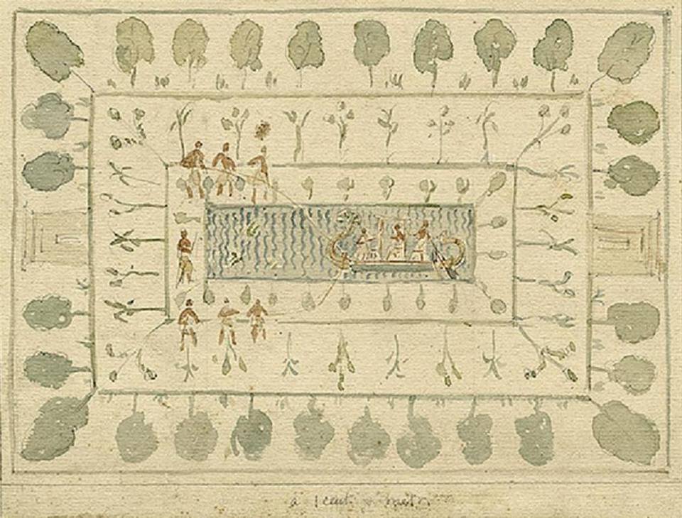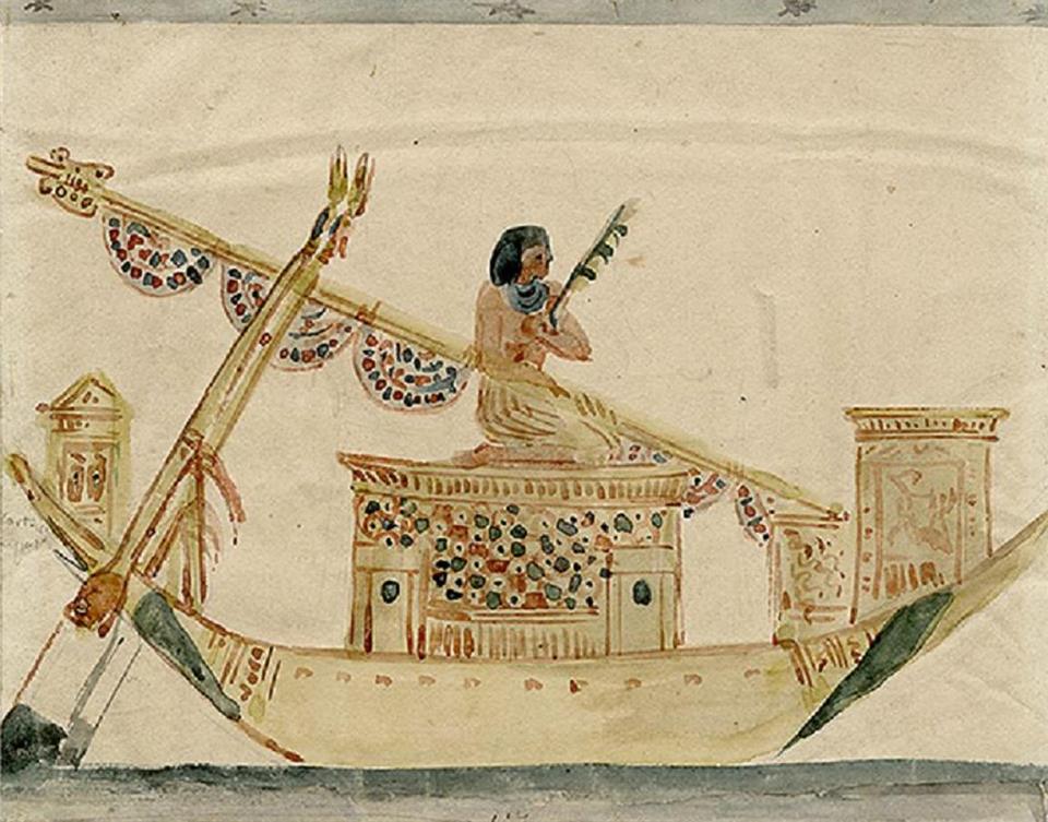 ![]() التابوت الرائع و أسماء الملك "آي" ، بالمقبرة رقم 23 بوادي القرود (وادي الملوك 2) ، بالأقصر ، بريشة هيكتور هورو
