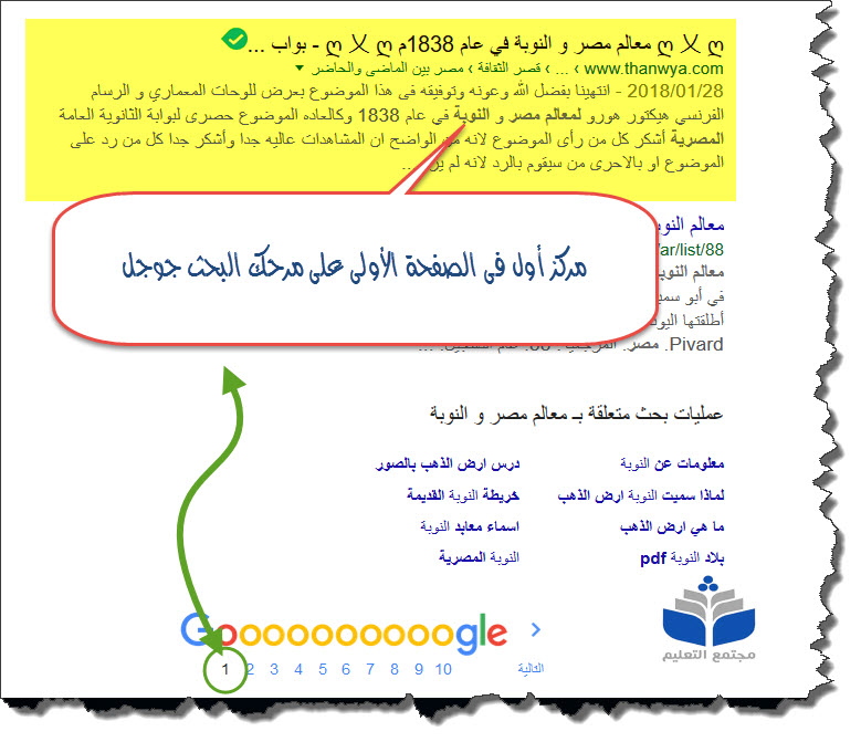 تصنيف الموضوع على الصفحة الاولى فى محرك البحث العالمى