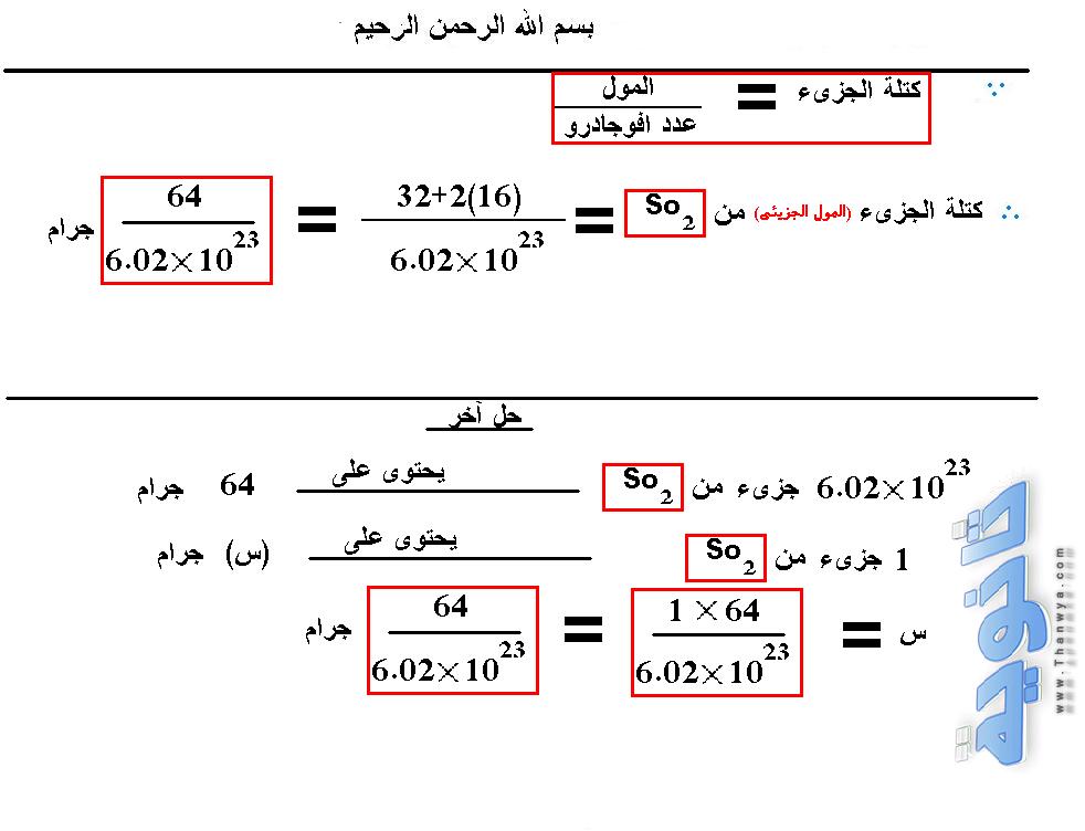 س جم .................... 1 جزئ س = 10.6 × 10 أس -23 جم