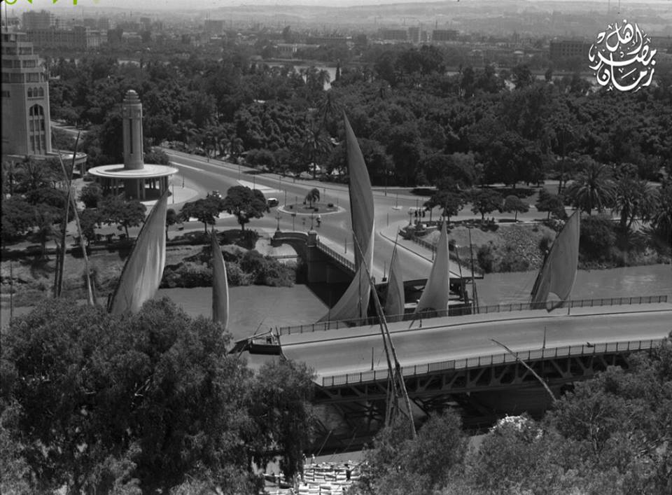 لقطة نادرة اثناء فتح كوبري الجلاء بالقاهرة لعبور المراكب الشراعية سنة 1942 .