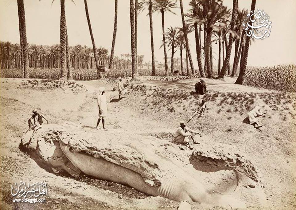 لقطة نادرة لتمثال رمسيس في قرية ميت رهينة بالبدرشين سنة 1863 .