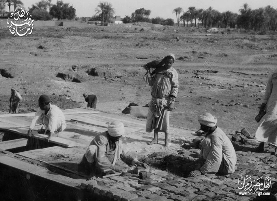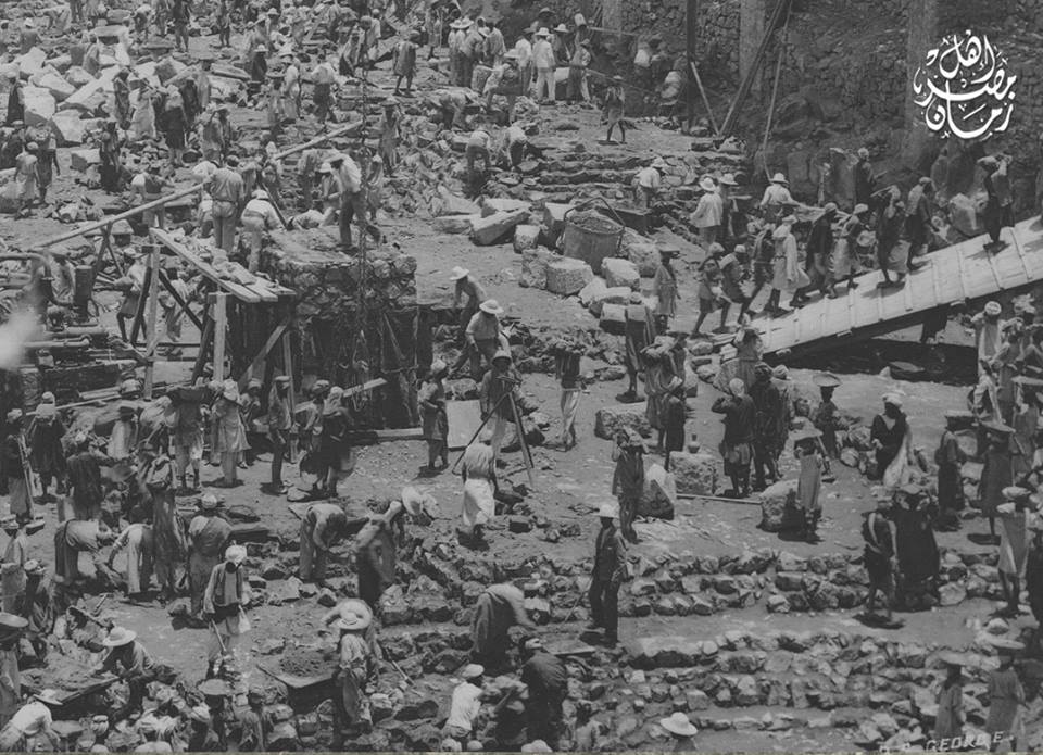لقطة نادرة للعمال اثناء بناء خزان اسوان حوالي عام 1899 .