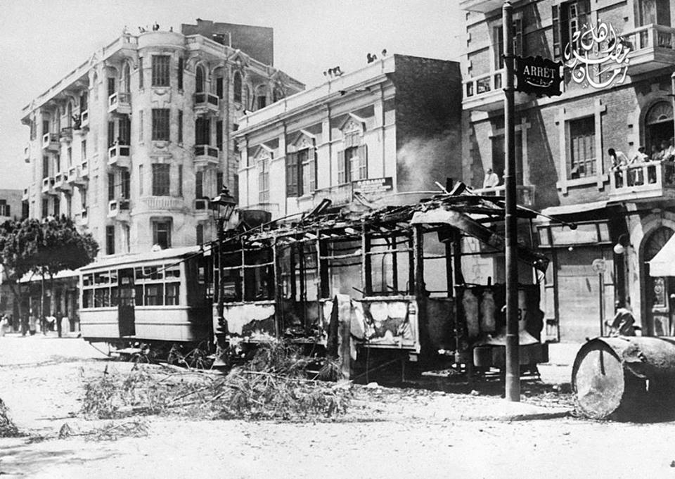 متظاهرون في القاهرة يمنعون سير الترام و يجبرون سائقه علي التوقف و الانضمام للاضراب العام في اطار احداث ثورة سنة 1919 مما أدي لحدوث اشتباكات مع قوات الاحتلال البريطاني تسببت في استشهاد بعض المتظاهرين و احتراق الترام ..
