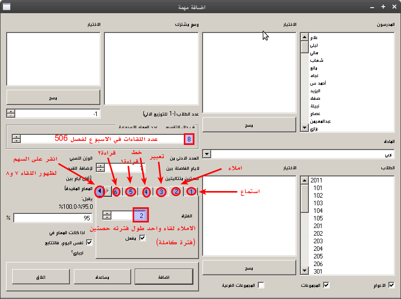 - اكملنا تحديد مدة اللقاءات إلى اللقاء الثامن ثم نقرنا على زر "اضافة" .