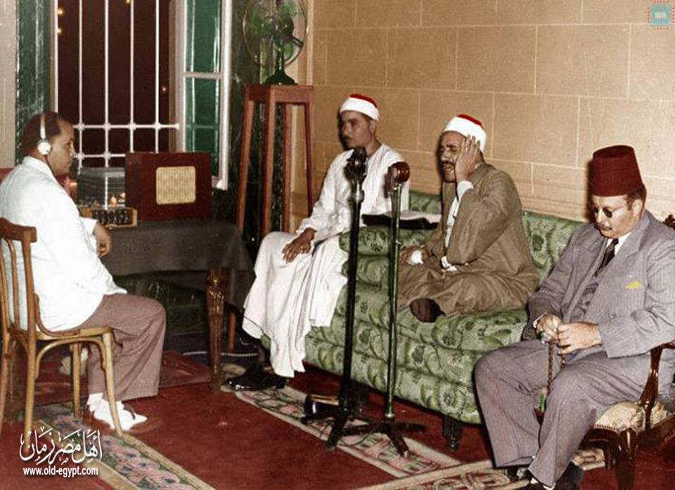 استمع الملك فاروق لصوت الشيخ مصطفي اسماعيل عبر الاذاعة فأعجب به وأصدر أمرا ملكيا بتكليفه ليكون قارئا للقصر الملكى فحاول محمد باشا سالم السكرتير الخاص للملك معرفة أية معلومات عن الشيخ مصطفى من الإذاعة فأخبره بعض القراء بأنه قارئ مجهول لا يعرفون عنه سوى اسمه فهب إلى الشيخ محمد الصيفى الذى أخبره عن عنوانه وبينما كان الشيخ يجلس بين أهله وأولاده بقرية ميت غزال إذ به يفاجأ بعمدة القرية ومأمور المركز يقتحمان عليه بيته ويسأله مأمور المركز بأسلوب استفزازى قائلا: أنت مصطفى إسماعيل؟ فقال: نعم وقد ظن أنه ارتكب جرما كبيرا دون أن يدرى فسأله: اية اللي حصل ؟ فقال: عليك أن تذهب غدا إلى القصر الملكى لمقابلة مراد باشا محسن ناظر الخاصة الملكية بقصر عابدين فسأله الشيخ : ولماذا؟ قال: لا أدرى وعليك أن تنفذ الأوامر.. فسافر إلى القاهرة فى صبيحة اليوم التالى والتقى بناظر الخاصة الملكية الذى هنأه بتقدير الملك لصوته وموهبته وأخبره بالأمر الملكى بتكليفه قارئا للقصر لإحياء ليالى رمضان بقصرى رأس التين والمنتزه بمدينة الإسكندرية . الصورة لفضيلة الشيخ مصطفي اسماعيل و الشيخ طة الفشني يقرا القرآن بينما يجلس الملك فاروق مستمعا و يقوم مهندس الاذاعة بالبث المباشر من القصر الملكي الصورة من تلوين المبدع الاستاذ Wleed Antar . ![]()