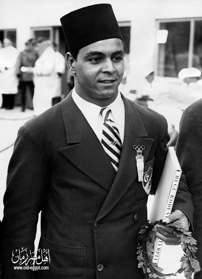 أقيم أوليمبياد برلين في الفترة من 1 حتى 16 أغسطس 1936 و افتتحها أدولف هتلر زعيم ألمانيا النازي بنفسه بعدما خصصت لها منشآت رائعة ، حيث أراد هتلر أن يظهر الوجه القوي و الشاب و المسالم لألمانيا في الحدث الرياضي الكبير .. و في هذه الدورة تألق أبطال مصر ، فأحرز خضر التوني ذهبية رفع الأثقال للوزن المتوسط ، و محمد مصباح ذهبية وزن الخفيف لرفع الأثقال و مواطنه صالح سليمان فضية رفع الأثقال لوزن الريشة ، و إبراهيم شمس برونزية رفع الأثقال لوزن الريشة و إبراهيم واصف برونزية رفع الأثقال لوزن الخفيف .. الصورة التقطت لبطل العالم محمد مصباح عقب تتويجة و عزف السلام الوطني للمملكة المصرية في برلين سنة 1936 . ![]()
