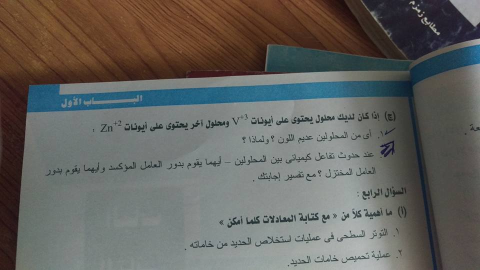 اجابة السؤال الاول ...لان تركيز ايونات النحاس يقل بسبب ترسبها علي هيئة كبريتيد نحاس..السؤال الثاني..متصلة بقطب ماغتيسيوم لكي يكون انود ويتآكل بدلا من الحديد..والسلك لابد ان يكون معزول حتي لا تنشأ بينه وبين الحديد خلية جلفانية ويكون الحديد فيها انود والسلك (وليكن سلك النحاس) يكون كاثود ويتأكل الحديد