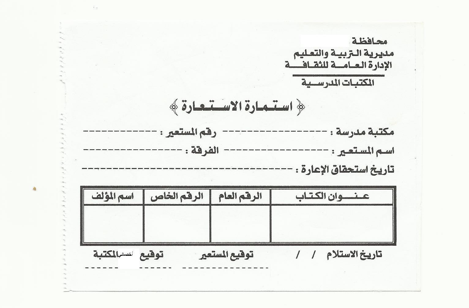 الاستمارة فى الوقت الحالى هامة جدا واعتقد معظم المكتبات بتستخدمها فى اعارة الكتب |