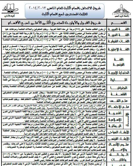 وغالبآ هتبقى نفس الشروط فى معظم الكليات