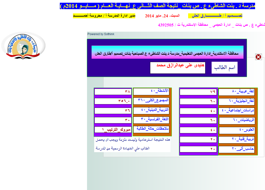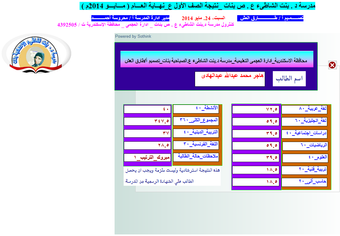 Icon114 نتيجة مدرسة / د . بنت الشاطىء الاعدادية ( الصباحية ) بنات