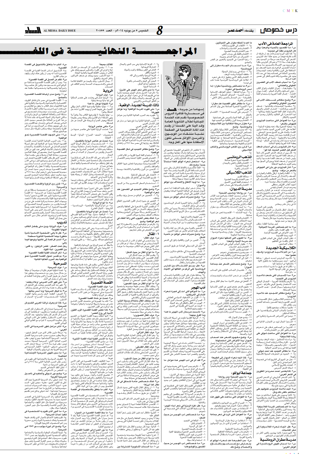 المراجعات النهائية بالأسئلة والأجوبة لمادة اللغة العربية «الجزء 2». ويضع الأسئلة كوكبة من أبرز المدرسين فى قطاع وزارة التربية والتعليم للثانوية، ويتم نشر المراجعات الخاصة بجميع المواد حتى موعد الامتحانات، ويمكنك عزيزى الطالب التفاعل أكثر مع أسئلة ومراجعات مواد الثانوية العامة بمتابعة موقع «كايرو دار» الذى يعد أول موقع مصرى متكامل يقدم الخدمة المعرفية والتعليمية والترفيهية والمعلوماتية فى قالب متكامل مفعم بالحيوية. أولاً: القراءة: • المجموعة الأولى: من كتاب «الأيام»، أجب عن أحد السؤالين الآتيين: 1 - «تقدمت السن بالصبى، وتقدم به الدرس أيضاً، وإذا هذا الشاب يظهر العطف عليه والقدر له، وإذ هو يعرض عليه أن يقرأ معه الكتب، ويعرض عن مشاركة أقرانه وأنداده إلى مشاركة هذا الغلام الناشئ». أ - هات مفرد «أنداد» وجمع «الناشئ». مفرد: «أنداد»: ند. - جمع: «الناشئ»: النشء. ب - من الشاب الذى تشير إليه العبارة السابقة؟ ولماذا عرض على الصبى أن يقرأ معه الكتب؟ الشاب الذى تشير إليه العبارة السابقة طالب الأزهر، ومن جيل الشباب الذى كان يتقرب إليهم، ويشهد معهم بعض الدروس، إلا أنه كان أكبرهم وأقدمهم عهدا بالأزهر، وكان قصير الذكاء، كما كان عقله محدوداً محصوراً. • وقد عرض على الصبى أن يقرأ معه الكتب، لأنه لم يستطع أن يشارك الشباب فى مطالعتهم ولا فى دروسهم. «ج» ما الكتب التى قرأها الشاب على الصبىّ؟ قرأ على الصبى كتباً فى الحديث، وأخرى فى المنطق، وأخرى فى التوحيد. «د» هذا الشاب احتال، وتخلص من الصبىّ، ومضى لشأنه، بِمَ تعلل ذلك؟ احتال هذا الشاب وتخلص من الصبى، لأنه لم يجد عنده غناء، كما أن الغلام ليس فارغا للضحك منه والتندر به، وليس قادرا على ذلك ولا راغبا فيه. 2 - «وكان يشعر شعوراً غامضاً ولكنه قوىّ، بأن هذا العلم لا حد له، وبأن الناس قد ينفقون حياتهم كلها، ولا يبلغون منه إلا أيسره». أ - ما معنى «لا حد له»، ومضاد «أيسره»؟ - معنى «لا حد له»: لا منتهى له. - مضاد «أيسره»: أكثره. ب - «هذا العلم لا حدّ له»، علام يدل هذا التعبير فى نفس الصبى؟ يدل هذا التعبير فى نفس الصبى على عظمة العلم وغزارته، وأن المعرفة لا حدود لها، وأن بحر العلم عميق مترامى الأطراف، ولابد لمن أحبه وعشقه أن يكون سباحاً ماهراً. ج - لم يجرؤ الصبى على التعبير عن مخاوفه من تلك الأصوات التى كانت تروعه وتفزعه فى غرفته، علِّل. لم يجرؤ الصبى على التعبير عن مخاوفه من تلك الأصوات التى كانت تروعه فى غرفته، خشية أن يسُفّه رأيه، وأن تُظنّ بعقله وبشجاعته الظنون فكان يؤثر العافية، ويمسك ما فى نفسه عند الغضب، ويكظم خوفه من الحشرات وصغار الحيوانات. • المجموعة الثانية: من كتاب القراءة ذى الموضوعات المتعددة: أجب عن السؤال الآتى: 2 - من موضوع « العلم فى الإسلام »: - «ومما له دلالة على أن العلم فى الإسلام غير محدود بحد معين قول الرسول «صلى الله عليه وسلم»: «أنتم أعلم بشئؤون دنياكم»، وهذا مما فتح الباب واسعاً أمام العقل ليستنبط من أنواع العلوم ما لا حصر له، ومنها ما يتعلق بشئؤون السياسة والاقتصاد والاجتماع وغيرها مما لم يرد فيه نص، وتأمل المعنى فى قول الإمام الرازى عند تفسيره لقوله تعالى: «وشاورهم فى الأمر». أ - «يستنبط - شئوون - السياسة»: هات مرادف الكلمة الأولى، ومفرد الثانية، والمادة اللغوية للكلمة الثالثة. يستنتج - شأن - س و س. ب - الذين يفهمون أن العلم فى الإسلام يعنى العلم بأحكامه وآدابه فهمهم خاطئ، بين سبب الخطأ فى هذا الفهم؟ يفهم بعض الناس خطأً أن العلم فى الإسلام مقصور على العلم بأحكام الدين وآدابه. وذلك لأن الإسلام جاء لكل أنواع النشاط الإنسانى ومنها البحث والتأمل فى الكون وما فيه من أرض وسماء وبحار وأنهار وجبال وحيوان وغير ذلك. وأمر الإسلام الإنسان بتعمير هذا الكون الذى سخره الله له، ومعنى ذلك أن الكون خاضع لإدراك الإنسان وبحثه واستغلال خيراته لتأمين حياته. وهذا التوجيه القرآنى الممثل فى قوله تعالى: « وسخر لكم ما فى السماوات وما فى الأرض جميعاً» يؤكد ر